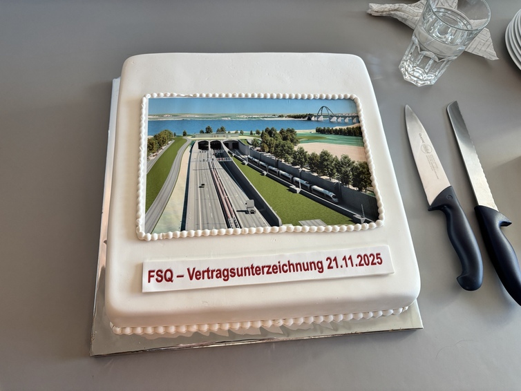 Ein wichtiger Schritt für die deutsche Schienenanbindung der Fehmarnbeltquerung ist getan: Am 21.11.2025 wurde der Vertrag für den Bau des Fehmarnsund-Tunnels im Kallmorgen Tower in Hamburg feierlich unterzeichnet.