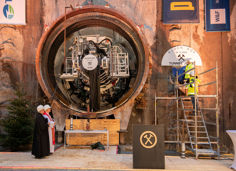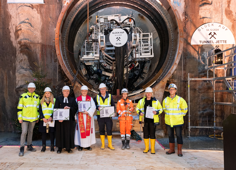 4 December is a very special day for tunnellers: on the name day of the patron saint of miners, St Barbara's Day is celebrated at underground construction sites around the world. This was also the case at the SuedLink ElbX tunnel construction site in Wewelsfleth, Schleswig-Holstein. On this important day, PORR and the client TenneT TSO GmbH honoured the patron saint and celebrated the naming of the tunnel and the tunnel boring machine together with political representatives.
