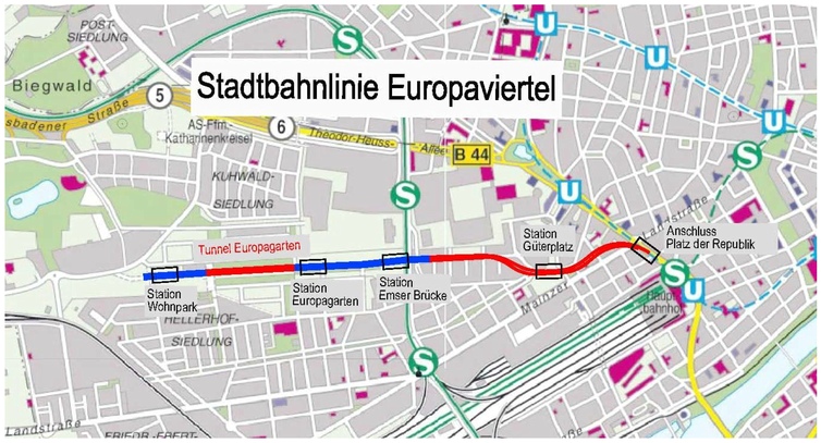 Am 07.Januar 2026 erteilte die Stadtbahn Entwicklung und Verkehrsinfrastrukturprojekte Frankfurt GmbH (SBEV) der Bietergemeinschaft Wayss & Freytag Ingenieurbau AG / Rhomberg Sersa Bahntechnik GmbH den Zuschlag für den Bau des unterirdischen Fahrwegs der neuen Stadtbahnlinie Europaviertel. Diese neue Linie ist eine Verlängerung der U5 Strecke vom Platz der Republik (nahe Hauptbahnhof) Richtung Westen durch das Europaviertel.